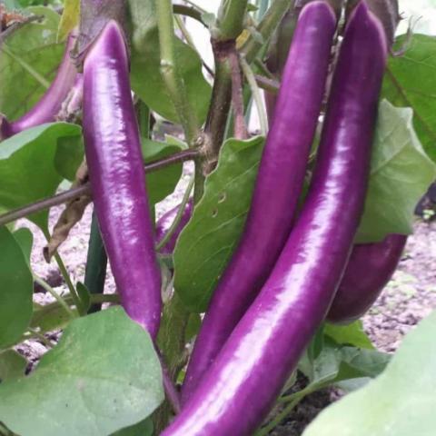 Variété ancienne d’aubergine, originaire d’Asie du Sud‑Est, sélectionnée pour ses fruits longs et fins.