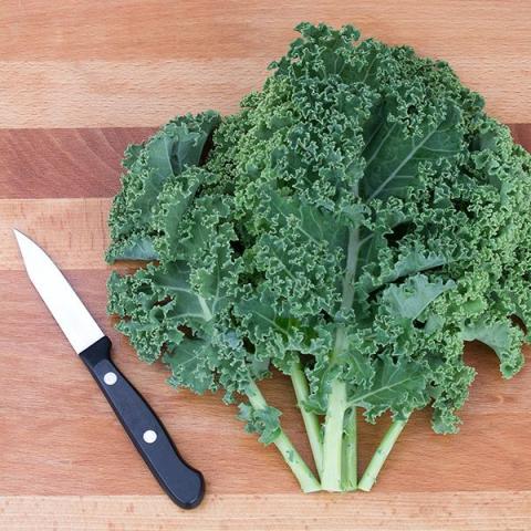 Chou kale ou chou frisé. Variété à feuilles vertes très frisées et fines.