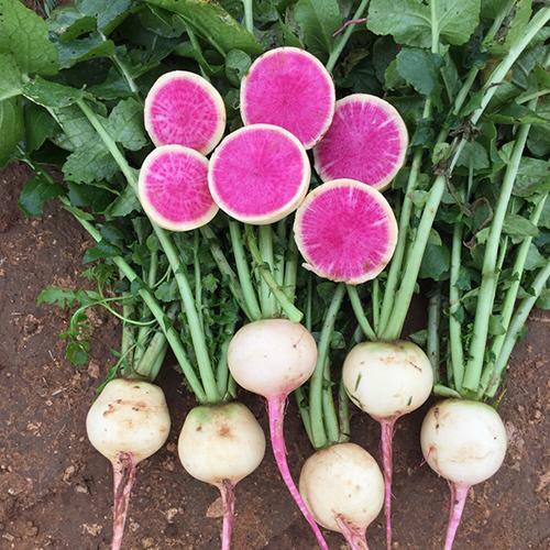 Radis d'hiver à la chair rose éclatante, mariné, en salade ou en tranches avec du bon pain et du beurre !
